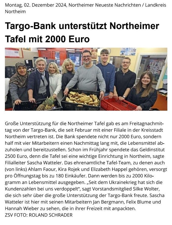 Die Lebensmittelausgabe der Northeimer Tafel in Nörten-Hardenberg ist ab sofort immer donnerstags an der Bünte.