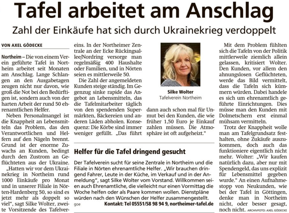 Die Arbeit für die Northeimer Tafel wird komplizierter.