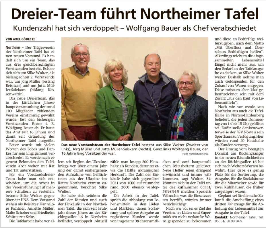Seit einem halben Jahr liefen die Vorbereitungen für den Umzug, jetzt ist er vollbracht: Die Northeimer Tafel hat ein neues Domizil an der Rückingsallee 16 im Erdgeschoss des Hotels „Zum Rücking“.