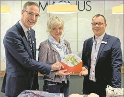 packen ein Paket im Rahmen der Johanniter-Unfall-Hilfe „Weihnachtstrucker Aktion“ für die Northeimer Tafel.